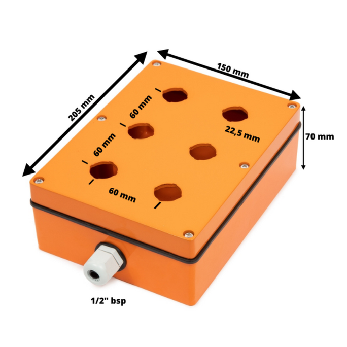 Caixa de Botoeira Metálica Alumínio 6 Furos 22mm - BTA-06-22